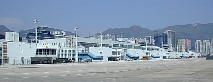 啓徳機場の飛行機ウォッチングポイントの定番。滑走路は駐車場や露店スペースとして使用されています。